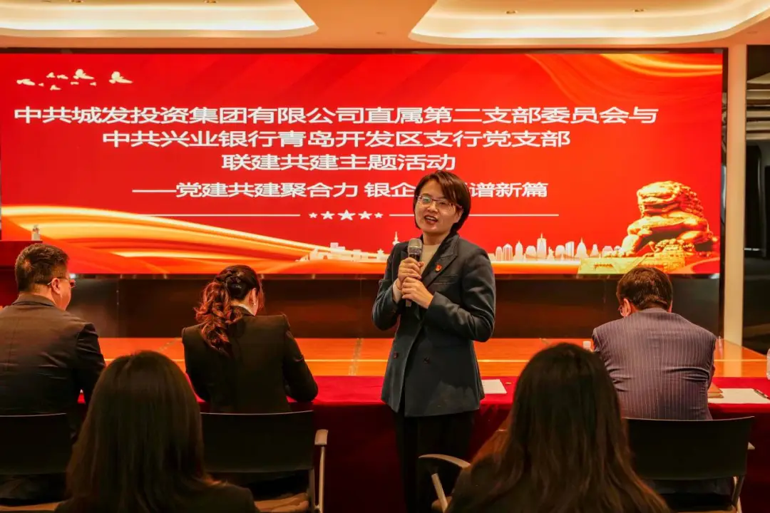 为充分发挥党建引领作用,构建“资源共享、优势互补”的党建工作新格局,3月12日,城发集团直属第二党支部与兴业银行青岛开发区支行党支部举行了联建共建活动。此次活动旨在进一步深化银企合作,实现党建工作与业务发展的深度融合。