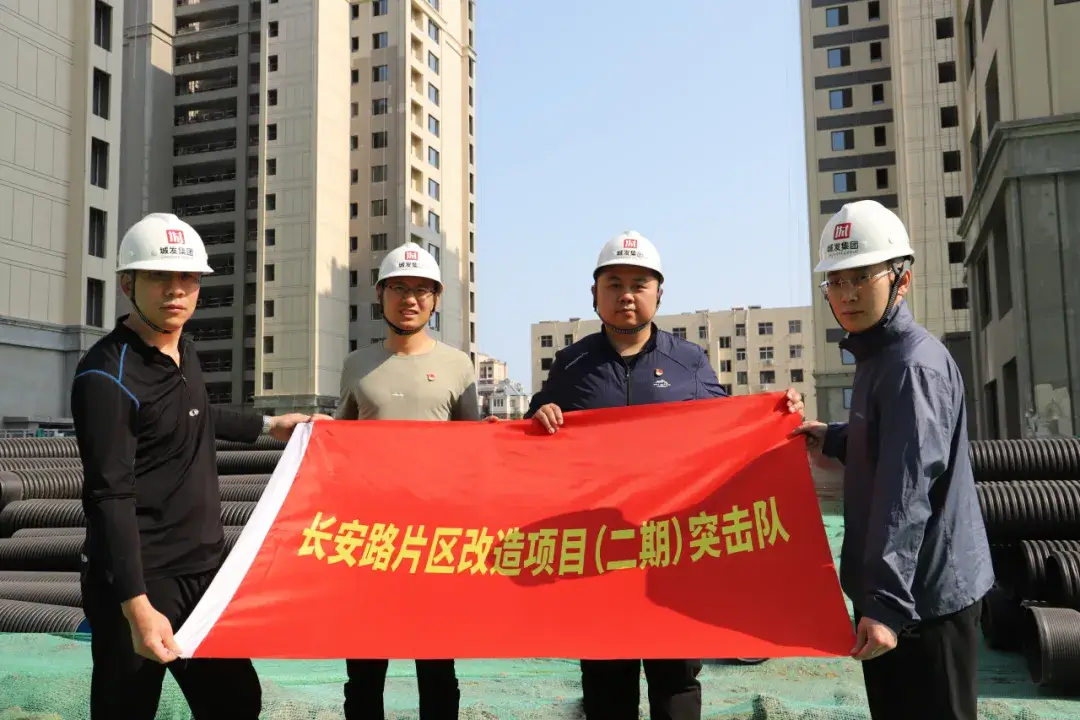 为打造高品质民生工程,为安置区居民交上一份满意的答卷,集团党委成立了长安路片区改造项目(二期)突击队。他们将精益建造理念贯穿施工全过程,通过细化节点管控、压实责任分工,实现项目的高质量推进。